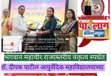 भगवान महावीर राज्यस्तरीय वक्तृत्व स्पर्धेत डॉ. ऋतुजा मुंडे यांचे यश; कोल्हापुरात पटकावला द्वितीय क्रमांक. ​कोल्हापूर:…