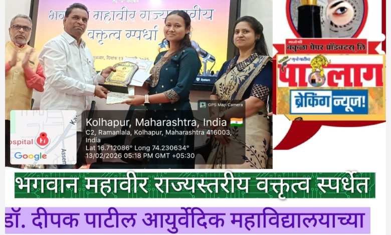 भगवान महावीर राज्यस्तरीय वक्तृत्व स्पर्धेत डॉ. ऋतुजा मुंडे यांचे यश; कोल्हापुरात पटकावला द्वितीय क्रमांक.