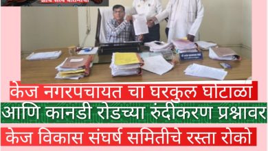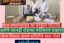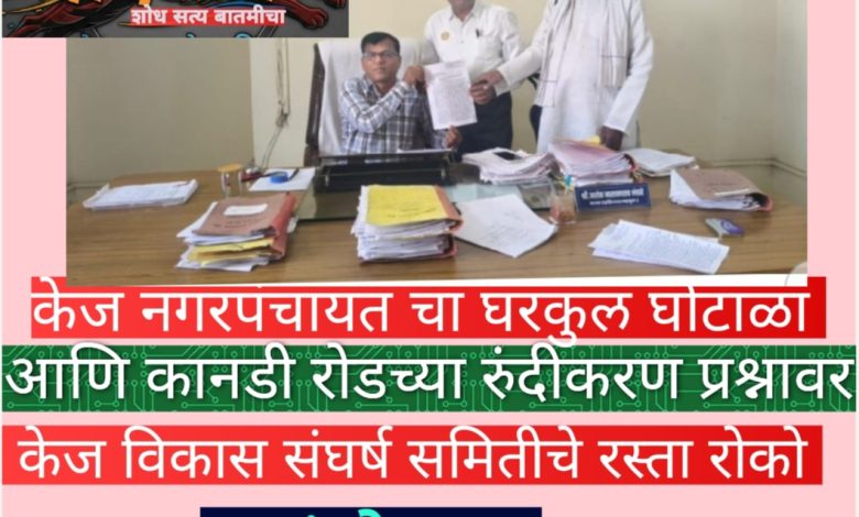 केज नगरपंचायत चा घरकुल घोटाळा आणि कानडी रोडच्या रुंदीकरण प्रश्नावर केज विकास संघर्ष समितीचे रस्ता…